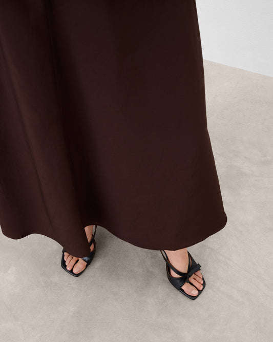 Bow-adorned high heels, refined kitten heels, and sculpted sandals define the season’s spring silhouette, seamlessly paired with structured shoulder bags and softly sculpted clutches to shape a considered wardrobe. The palette remains grounded in Crema, Biscotti, Black, and Chocolate, subtly refined by Cherry Red — a composed accent that lends depth and quiet confidence.